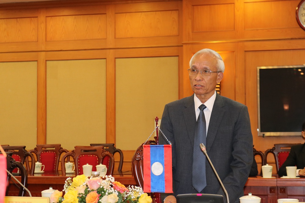 | Đồng chí Khăm-Phăn Phởi-Nhạ-Vông, Bí thư Trung ương Đảng, Trưởng ban Tuyên huấn Trung ương Đảng Nhân dân cách mạng Lào phát biểu tại cuộc gặp |