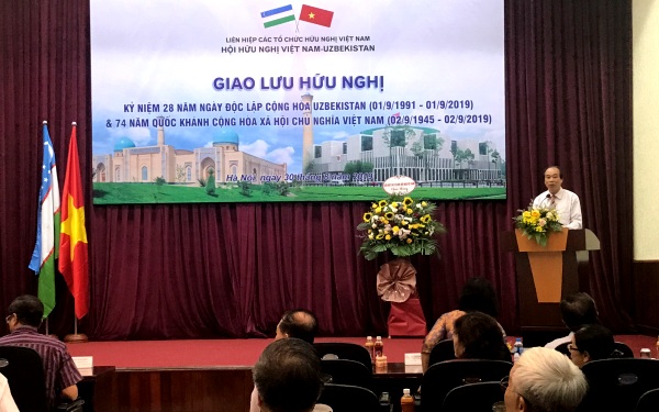 Ngày 30/8, tại Hà Nội, Hội Hữu nghị Việt Nam – Uzbekistan đã tổ chức Giao lưu hữu nghị kỷ niệm 28 năm Ngày Độc lập nước Cộng hòa Uzbekistan và 74 năm Quốc khánh nước Việt Nam.