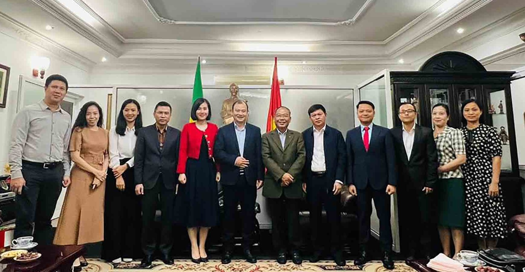 | Đoàn đến thăm, làm việc và chụp ảnh kỷ niệm với cán bộ Đại sứ quán Việt Nam tại Tanzania (Ảnh: ĐSQ Việt Nam tại Tanzania) |