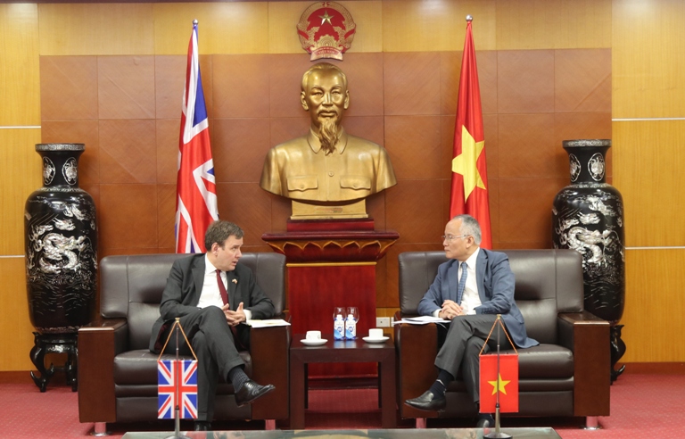 | Quốc vụ khanh Greg Hands gặp Thứ trưởng Bộ Công thương Trần Quốc Khánh |