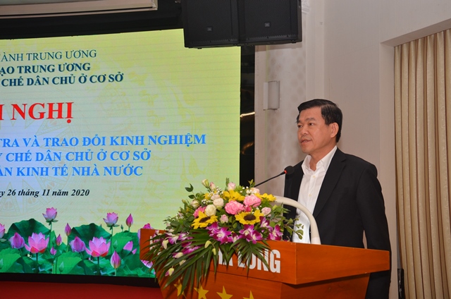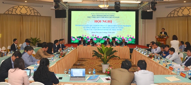 | Hội nghị Đánh giá kết quả kiểm tra và trao đổi kinh nghiệm về thực hiện quy chế dân chủ ở cơ sở cụm các tập đoàn kinh tế nhà nước (Ảnh: TT) |