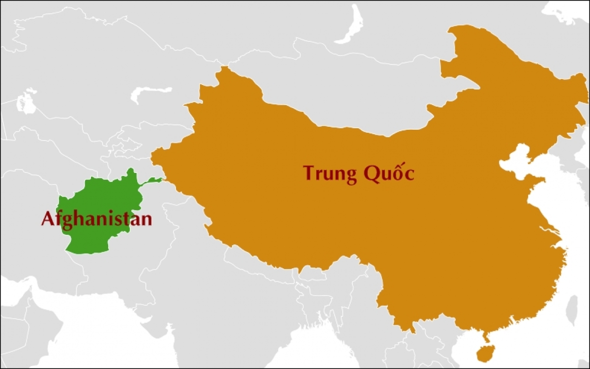 Afghanistan và Trung Quốc trên bản đồ thế giới. Nguồn ảnh: Wikipedia.