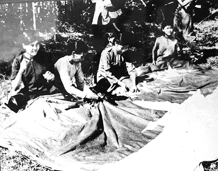 Phụ nữ Hậu Nghĩa (Đức Hòa - Long An) may cờ cho bộ đội trong kháng chiến chống Mỹ. Ảnh: hoasen.edu.vn