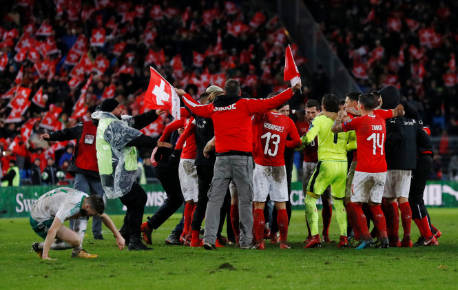 Thụy Sĩ ăn mừng vé dự World Cup 2018. Ảnh: Reuters