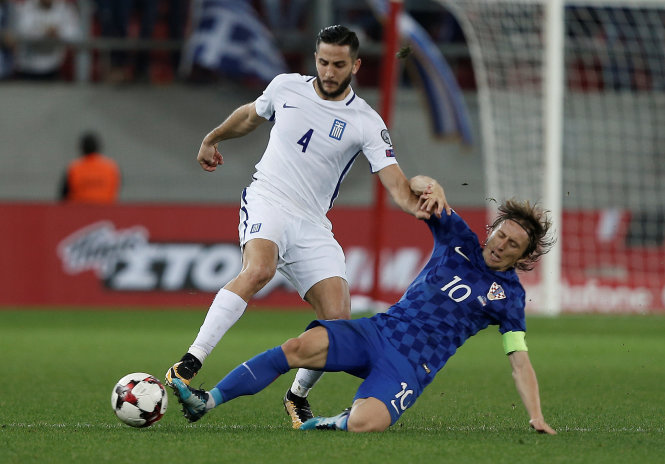 Dù rất nỗ lực nhưng Hi Lạp (trái) không thể gây bất ngờ trước Croatia. Ảnh: Reuters