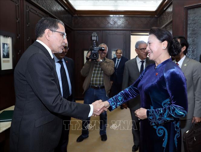 Bày tỏ vui mừng gặp Ngài Thủ tướng Maroc, Chủ tịch Quốc hội Nguyễn Thị Kim Ngân cảm ơn Thủ tướng đã dành thời gian cho cuộc tiếp; đồng thời trân trọng cảm ơn về những đánh giá, những tình cảm tốt đẹp mà Thủ tướng dành cho Việt Nam. Chia sẻ về mục đích chuyến thăm Maroc lần này nhằm thúc đẩy quan hệ hai nước, Chủ tịch Quốc hội chúc mừng những thành tựu Maroc đã đạt được trong phát triển kinh tế - xã hội và hội nhập quốc tế.
