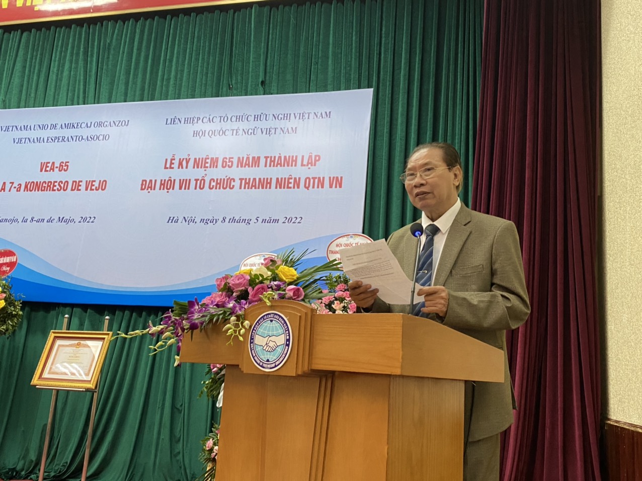 Ngày 8/5, tại Hà Nội, Liên hiệp các tổ chức hữu nghị Việt Nam đã tổ chức Lễ kỷ niệm 65 năm Ngày thành lập Hội Quốc tế ngữ Việt Nam và Đại hội Thanh niên quốc tế ngữ nhiệm kỳ VII (2022 – 2024).