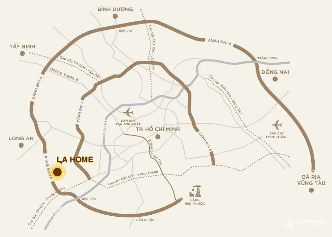 Về vị trí: Dự án hội tụ 3 yếu tố vàng của một bất động sản đó là “nhất cận thị, nhị cận giang, tam cận lộ”. LA Home có 3 mặt giáp sông Vàm Cỏ Đông; gần cao tốc Bến Lức - Long Thành, Vành đai 4; gần chợ, siêu thị, bệnh viện, KCN và hàng loạt các tiện ích hiện hữu.