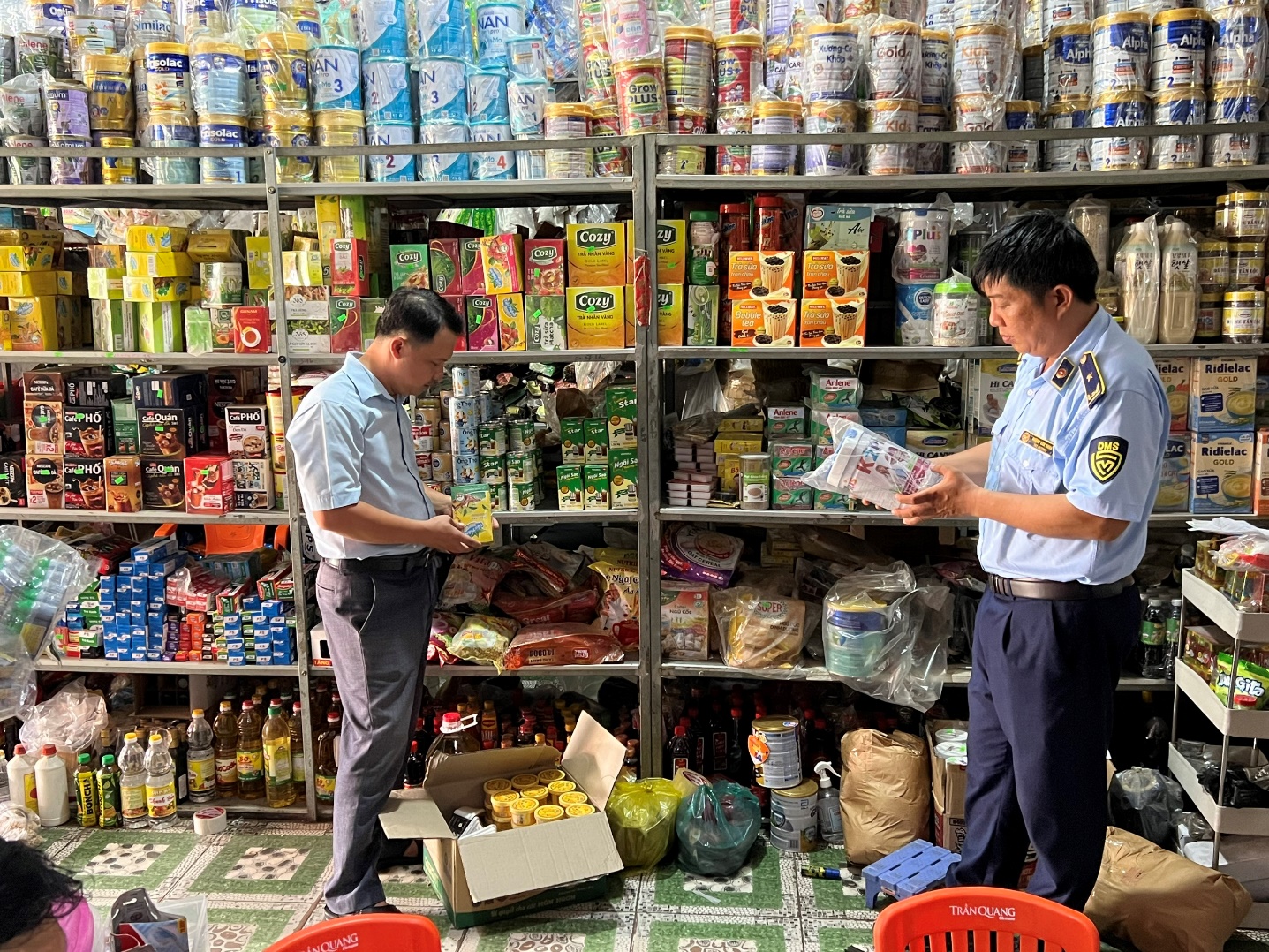 | Đội QLTT số 5 kiểm tra cơ sở kinh doanh thực phẩm tại huyện Cái Bè (Ảnh: QLTT) |