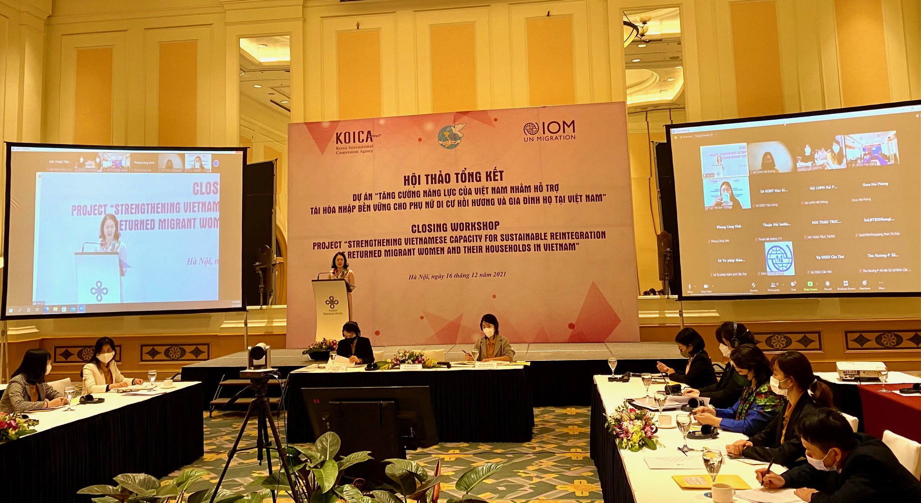Ngày 16/12, tại Hà Nội, Hội Liên hiệp phụ nữ (LHPN) Việt Nam với sự tài trợ của Cơ quan hợp tác quốc tế Hàn Quốc (KOICA) thông qua tổ chức Tổ chức Di cư Quốc tế (IOM) tổ chức tổng kết giai đoạn 1 thực hiện dự án “Tăng cường năng lực của Việt Nam nhằm hỗ trợ tái hòa nhập bền vững cho phụ nữ di cư trở về và gia đình của họ” (2019 – 2021). Hoạt động này diễn ra vào ngày cuối cùng của Tháng hành động vì bình đẳng giới và phòng, chống bạo lực trên cơ sở giới năm 2021.