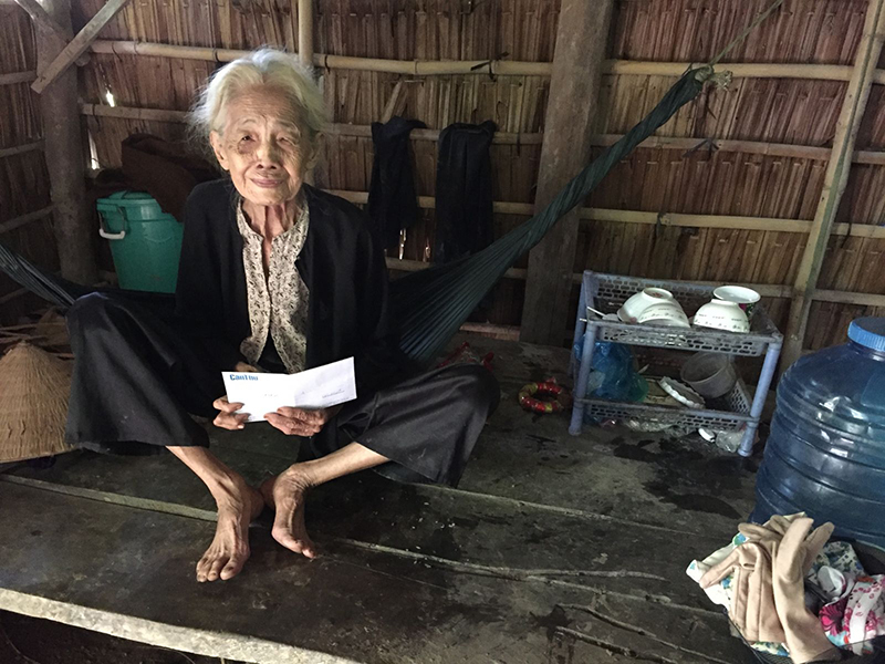 Bà Nguyễn Thị A nhận tiền của bạn đọc Nguyễn Văn Chương tặng.