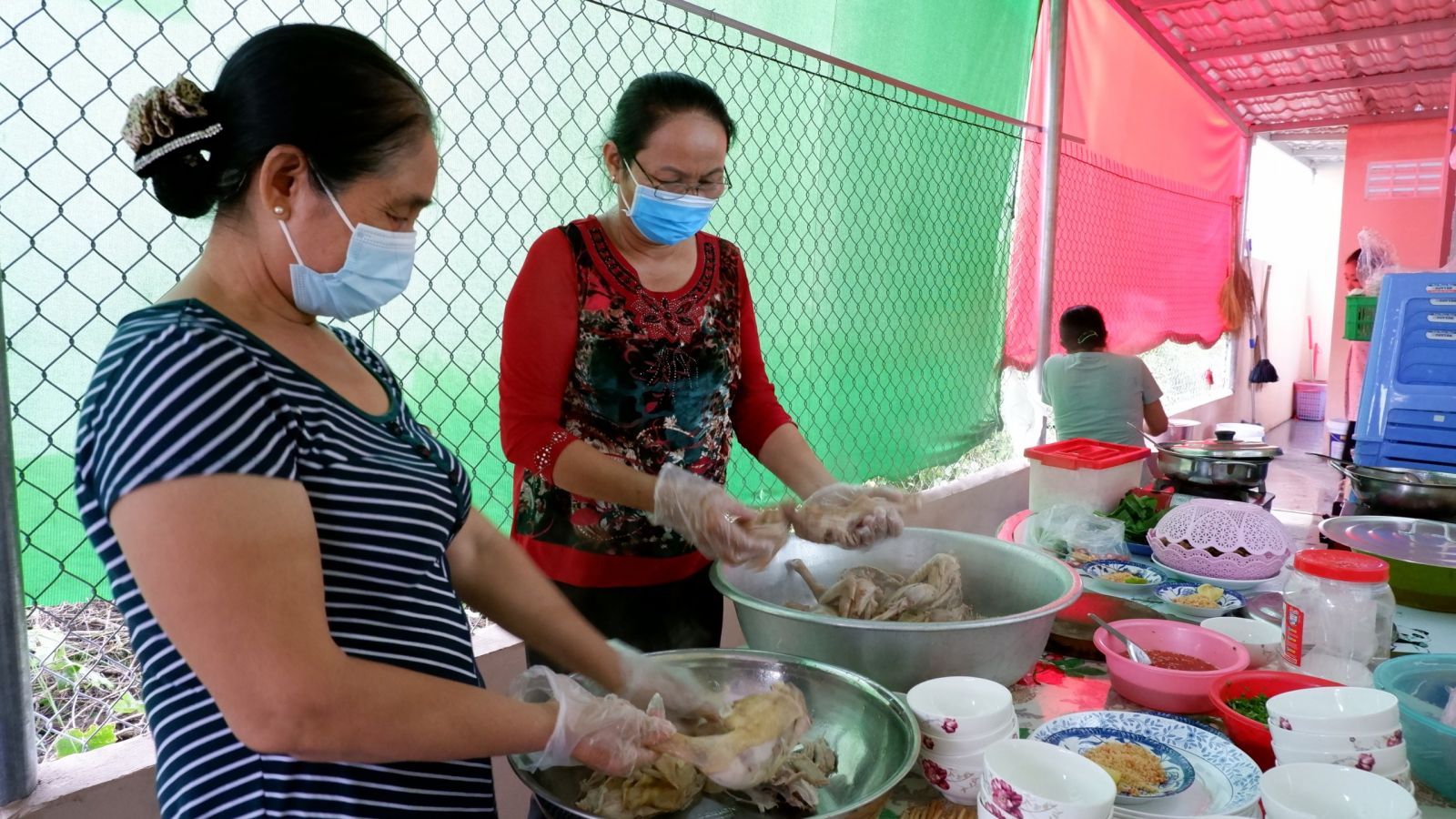 23/5 là ngày chính thức diễn ra cuộc bầu cử đại biểu Quốc hội khóa XV và đại biểu HĐND các cấp, nhiệm kỳ 2021 - 2026, vậy mà từ buổi chiều 22/5, căn bếp nhỏ của gia đình bà Lê Thị Thiêu, ngụ khu phố Bình Quân 3, phường 4, TP.Tân An bắt đầu đỏ lửa để chuẩn bị phục vụ suất ăn cho các thành viên trong tổ bầu cử. Các món ăn được các chị em khu phố Bình Quân 3 làm rất ngon, hấp dẫn và đa dạng, với các món như thịt kho tàu, khổ qua dồn thịt, cháo gà, gỏi gà, dưa chua,…