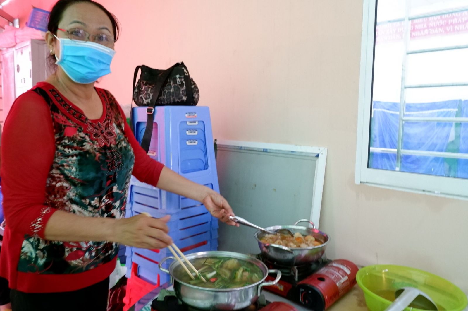 Phụ nữ khu phố Bình Quân 3, phường 4, TP.Tân An chuẩn bị bữa ăn cho các thành viên trong tổ bầu cử
