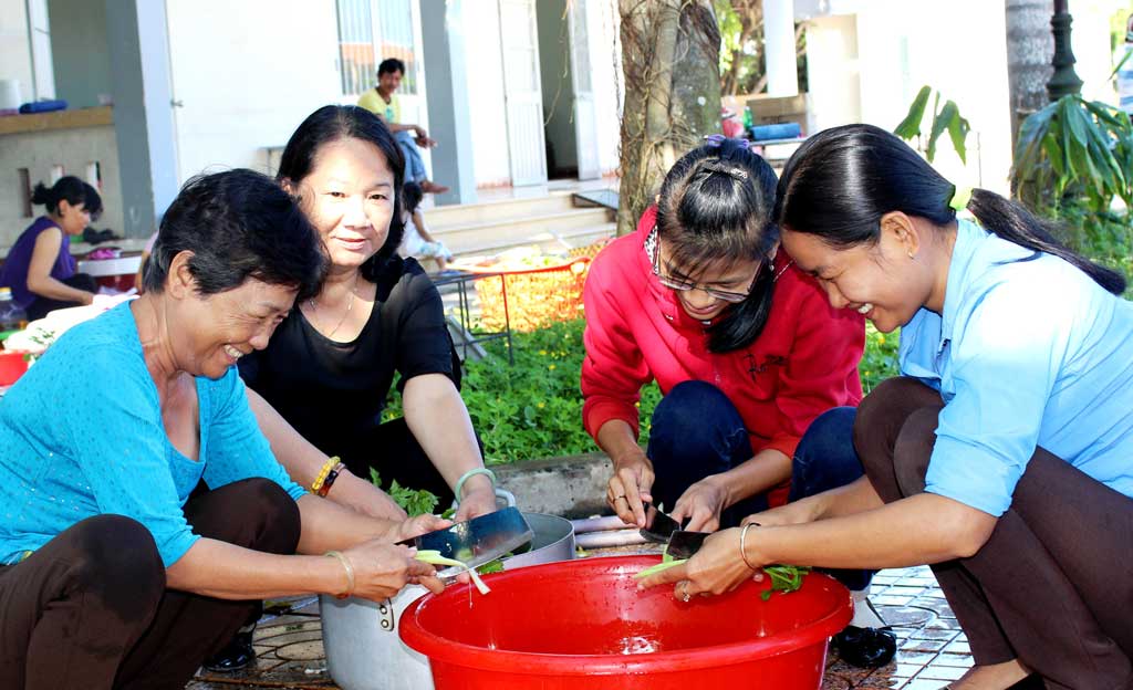 Các hội viên phụ nữ đảm nhận việc nấu ăn cho thí sinh