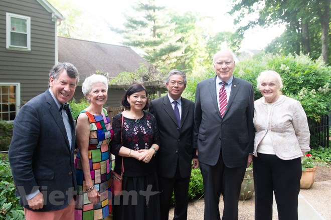 Tại các cuộc gặp, Đại sứ Phạm Quang Vinh đã chia sẻ đánh giá về tầm quan trọng của sự phát triển quan hệ Đối tác Toàn diện Việt Nam – Hoa Kỳ trên các lĩnh vực và thành công của các chuyến thăm cấp cao diễn ra liên tục trong hơn 3 năm qua. Đại sứ đặc biệt cảm ơn Thượng nghị sỹ Patrick Leahy và các bạn bè Hoa Kỳ vì những đóng góp quý báu, thúc đẩy mối quan hệ Đối tác Toàn diện Việt Nam - Hoa Kỳ phát triển mạnh mẽ.