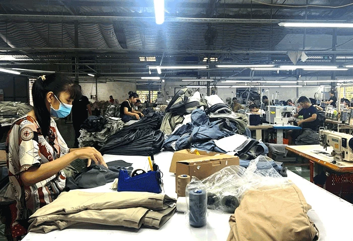 Hoạt động sản xuất tại Công ty TNHH May xuất khẩu Phong Ðiền, xã Trường Long, huyện Phong Ðiền.