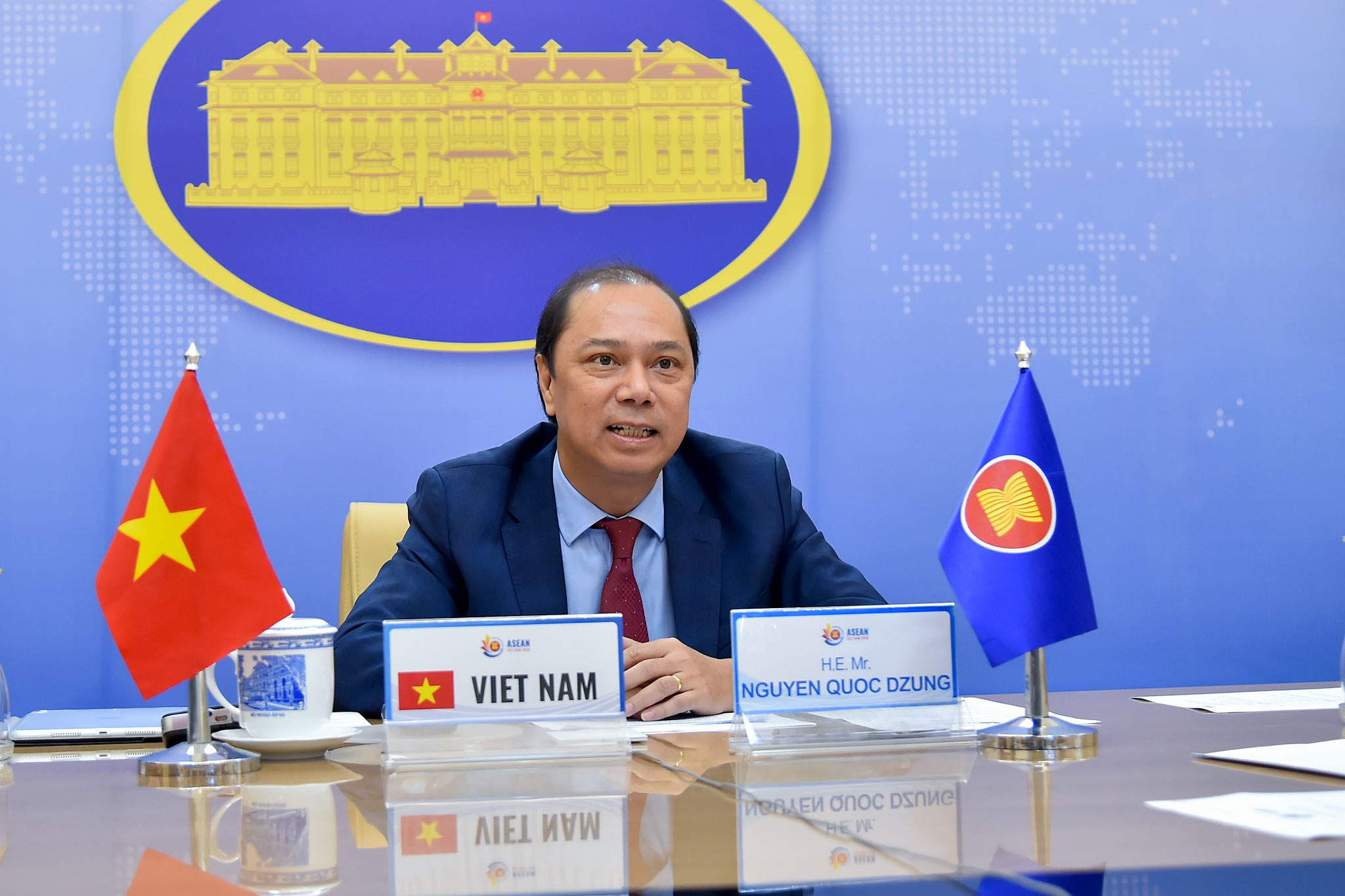 Phát biểu đại diện cho Việt Nam trong vai trò Chủ tịch ASEAN, Thứ trưởng Nguyễn Quốc Dũng khẳng định trong bối cảnh dịch bệnh diễn biến phức tạp, ASEAN đã phát huy tinh thần Gắn kết và Chủ động thích ứng, thúc đẩy đoàn kết, thống nhất và nỗ lực của cả Cộng đồng vượt qua các khó khăn, thử thách, đồng thời đánh giá cao sự trợ giúp kịp thời của Mỹ đối với ASEAN trong ứng phó với đại dịch ngay từ khi mới bùng phát. Thứ trưởng Nguyễn Quốc Dũng đề nghị Mỹ tiếp tục hỗ trợ ASEAN nâng cao năng lực ứng phó, giảm thiểu các tác động của dịch bệnh và thúc đẩy phục hồi kinh tế bền vững, khẳng định ASEAN hoan nghênh và sẵn sàng tạo điều kiện thuận lợi cho doanh nghiệp và nhà đầu tư Mỹ hoạt động tại khu vực ASEAN. Thứ trưởng hoan nghênh đề xuất của Mỹ xây dựng Quan hệ đối tác Mê Công-Mỹ, hỗ trợ thúc đẩy và hài hoà các nỗ lực phát triển tiểu vùng, trong đó có tiểu vùng Mê Công trong tổng thể phát triển của ASEAN.