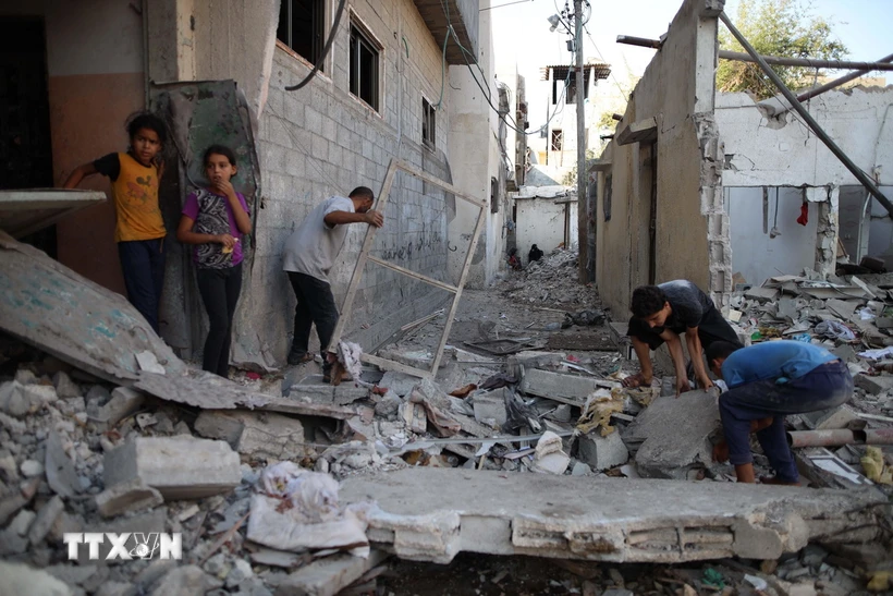Hiện trường đổ nát sau cuộc không kích của Israel xuống Dải Gaza ngày 14/8/2024. (Ảnh: THX/TTXVN)