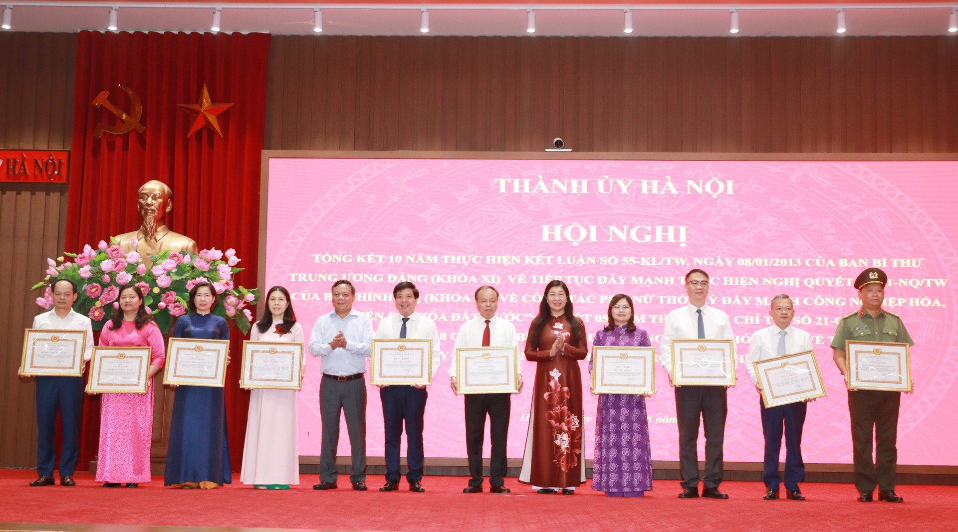 Sáng 30/8, Phó Bí thư Thành ủy Hà Nội Nguyễn Văn Phong đã chủ trì Hội nghị Tổng kết 10 năm thực hiện Kết luận số 55-KL/TW, ngày 08/1/2013 của Ban Bí thư Trung ương Đảng (khóa XI) về tiếp tục đẩy mạnh thực hiện Nghị quyết số 11-NQ/TW của Bộ Chính trị (khóa X) “về công tác phụ nữ thời kỳ đẩy mạnh công nghiệp hóa, hiện đại hóa đất nước”; Sơ kết 5 năm thực hiện Chỉ thị số 21-CT/TW, ngày 20/01/2018 của Ban Bí thư Trung ương Đảng (khóa XII) “về tiếp tục đẩy mạnh công tác phụ nữ trong tình hình mới”.