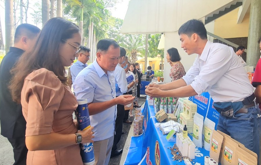 | Hoạt động trưng bày và giới thiệu sản phẩm vùng miền, sản xuất nông sản: ”Kết nối giao thương” tại buổi gặp mặt. |