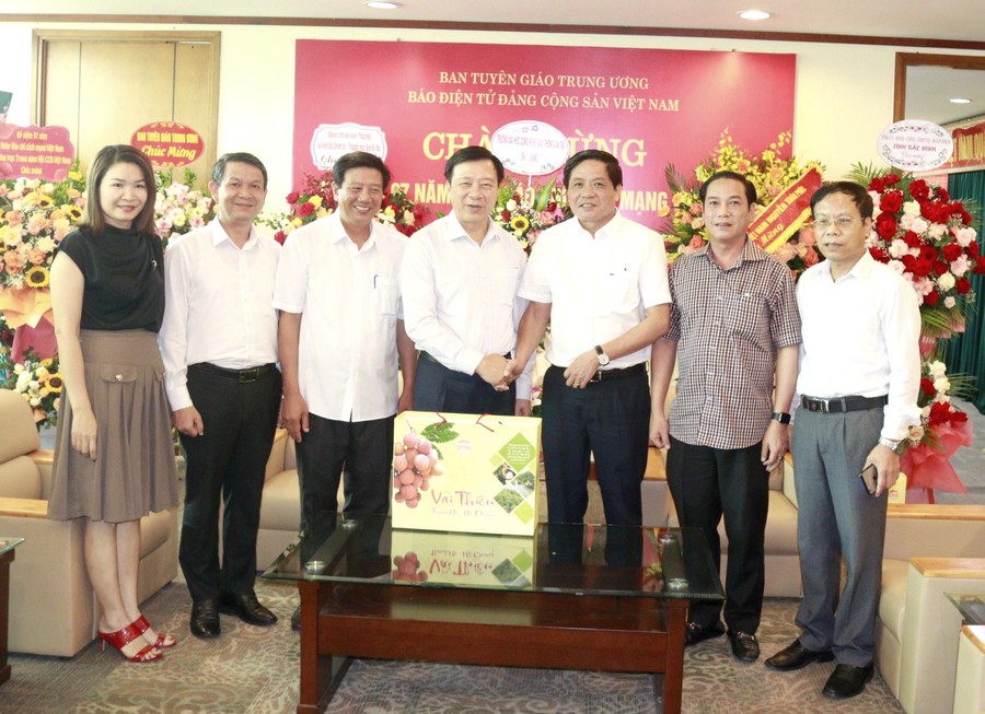 | Đồng chí Bí thư Tỉnh ủy Phạm Xuân Thăng tặng quà chúc mừng Báo điện tử Đảng Cộng sản Việt Nam. |