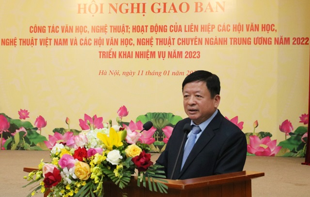 | Hội nghị giao ban công tác văn học, nghệ thuật, hoạt động của Liên hiệp các Hội Văn học, nghệ thuật (VHNT) Việt Nam, các Hội Văn học, nghệ thuật chuyên ngành Trung ương năm 2022, triển khai nhiệm vụ năm 2023. |