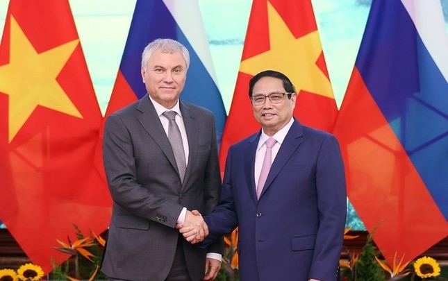 | Thủ tướng Chính phủ Phạm Minh Chính và Chủ tịch Duma Quốc gia Quốc hội Liên bang Nga Vyacheslav Volodin |