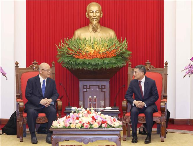 | Trưởng Ban Tổ chức Trung ương Lê Minh Hưng tiếp Cố vấn đặc biệt Liên minh Nghị sĩ hữu nghị Nhật - Việt Takebe Tsutomu. (Ảnh: Phương Hoa - TTXVN). |
