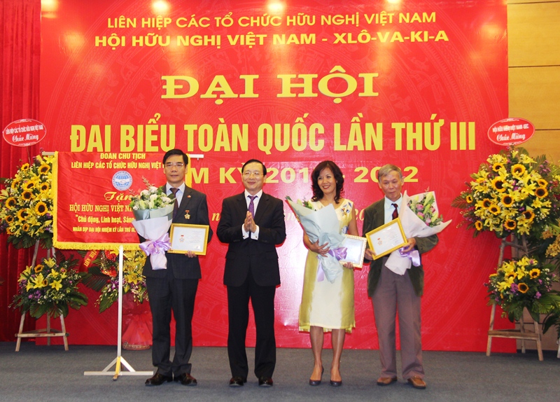 Nhân dịp này, thay mặt Đoàn Chủ tịch Liên hiệp các tổ chức hữu nghị Việt Nam, Phó Chủ tịch Bùi Khắc Sơn đã trao Kỷ niệm chương “Vì hòa bình hữu nghị giữa các dân tộc” và Bằng khen tặng các tập thể và cá nhân đã có những đóng góp tích cực vào các hoạt động đối ngoại nhân dân của Hội hữu nghị Việt Nam – Slovakia trong nhiệm kỳ vừa qua./.