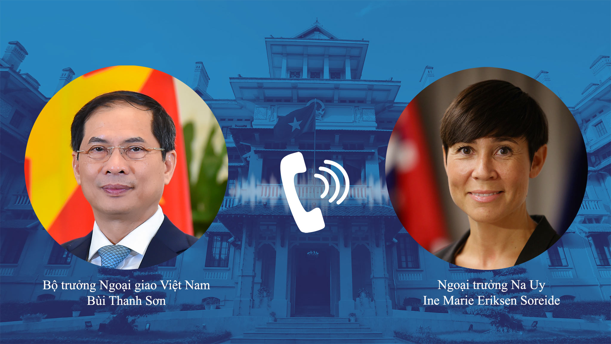 | Bộ trưởng Ngoại giao Bùi Thanh Sơn tại buổi điện đàm với Bộ trưởng Ngoại giao Na Uy |