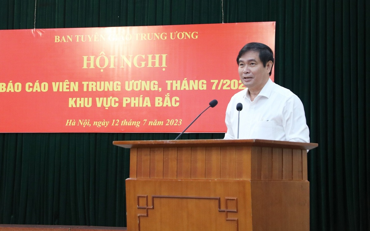 Sáng 12/7, tại Hà Nội, Ban Tuyên giáo Trung ương tổ chức Hội nghị Báo cáo viên Trung ương tháng 7/2023 khu vực phía Bắc. Đồng chí Phan Xuân Thủy, Phó Trưởng ban Tuyên giáo Trung ương chủ trì Hội nghị.