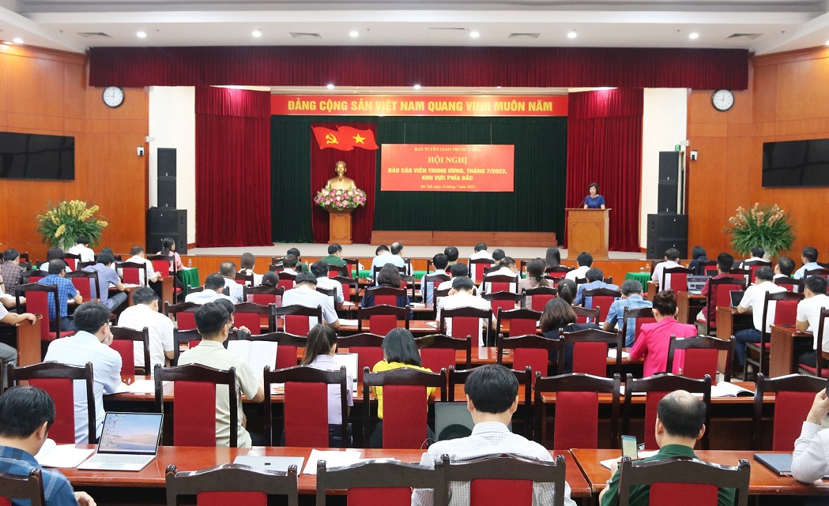 | Toàn cảnh Hội nghị Báo cáo viên Trung ương tháng 7/2023 khu vực phía Bắc, sáng 12/7. |