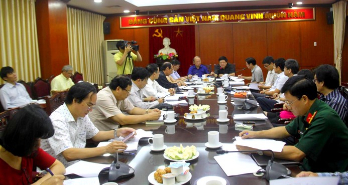 Đồng chí Võ Văn Phuông, Ủy viên Trung ương Đảng, Phó Trưởng Ban Thường trực Ban Tuyên giáo Trung ương; đồng chí Nguyễn Thế Kỷ, Ủy viên Trung ương Đảng, Tổng Giám đốc Đài Tiếng nói Việt Nam, Chủ tịch Hội đồng Lý luận, phê bình văn học, nghệ thuật Trung ương chủ trì buổi họp.