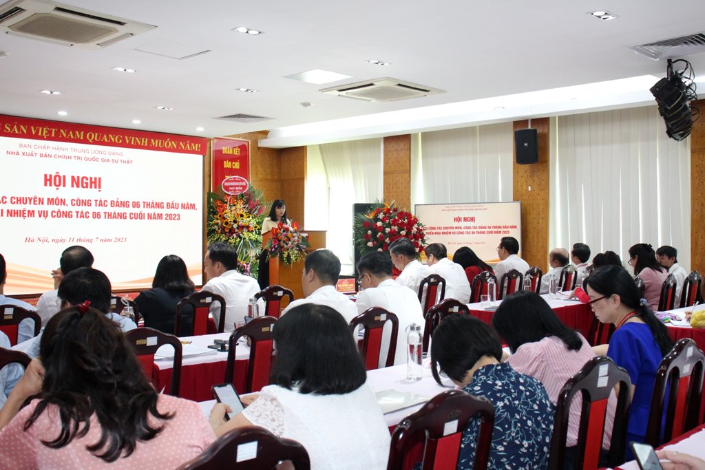 Trong khuôn khổ Hội nghị, Nhà xuất bản cũng đã tổ chức Hội nghị sơ kết công tác 6 tháng đầu năm và triển khai nhiệm vụ 6 tháng cuối năm 2023. Báo cáo sơ kết nêu rõ: trong 6 tháng đầu năm 2023, bên cạnh những thành tích, kết quả đạt được, việc thực hiện công tác chuyên môn và công tác Đảng của Nhà xuất bản Chính trị quốc gia Sự thật vẫn còn một số hạn chế, thiếu sót, từ đó đề ra những nhiệm vụ trọng tâm cần thực hiện trong 6 tháng cuối năm 2023.