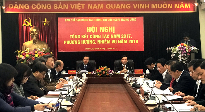 Năm 2017, Ban Chỉ đạo Công tác thông tin đối ngoại Trung ương đã bám sát Kết luận 16 của Bộ Chính trị (khóa XI) về Chiến lược phát triển thông tin đối ngoại giai đoạn 2011-2020, đường lối đối ngoại tại Đại hội XII của Đảng để thống nhất, kịp thời định hướng thông tin, tuyên truyền cho các cơ quan thông tấn, báo chí; các ban, bộ, ngành Trung ương, các tỉnh, thành phố trên cả nước.