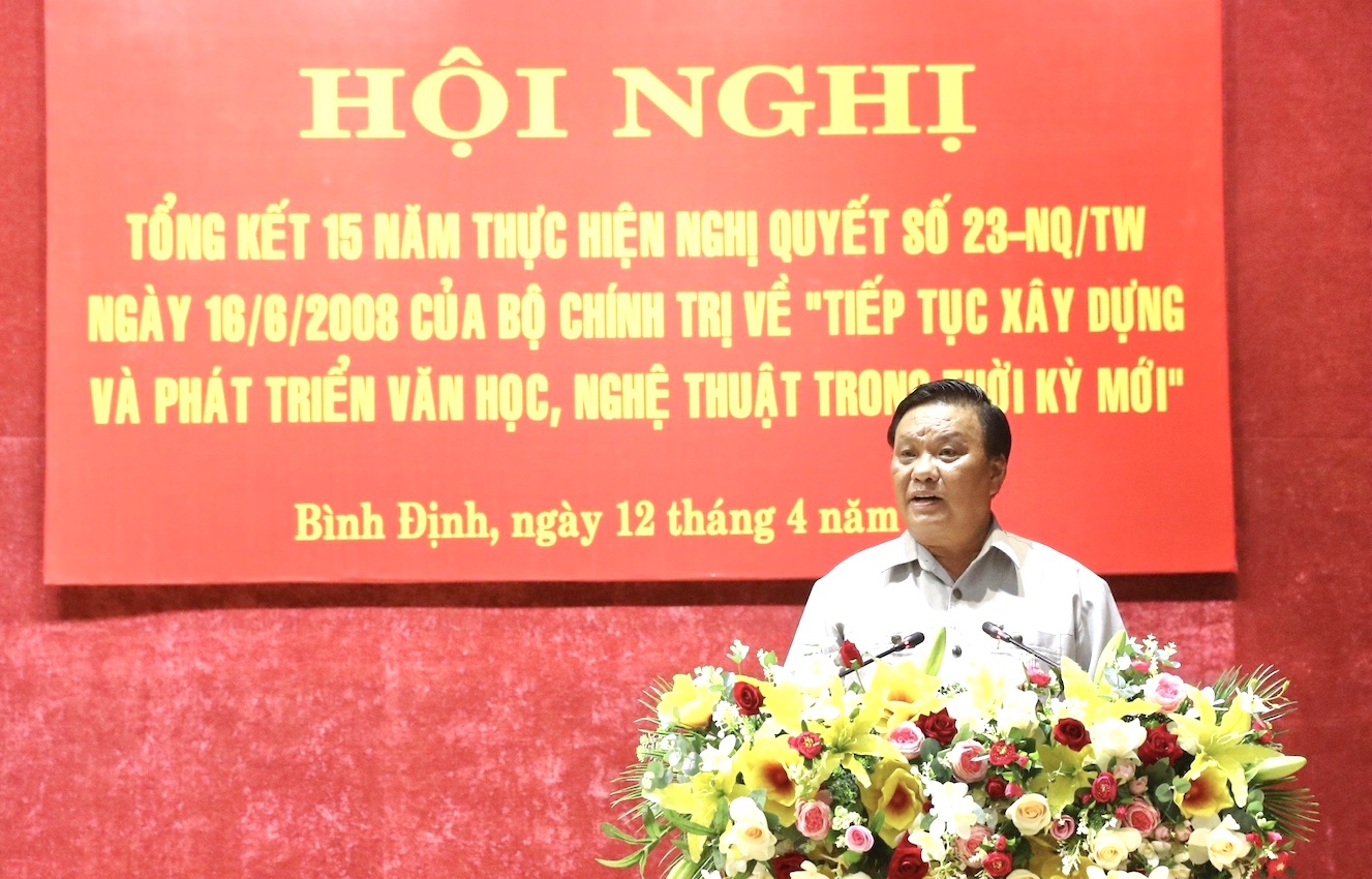 Ngày 12/4, Ban Thường vụ Tỉnh uỷ Bình Định tổ chức Hội nghị tổng kết 15 năm thực hiện Nghị quyết số 23-NQ/TW ngày 16/6/2008 của Bộ Chính trị khóa X về tiếp tục xây dựng và phát triển văn học, nghệ thuật (VHNT) trong thời kỳ mới.