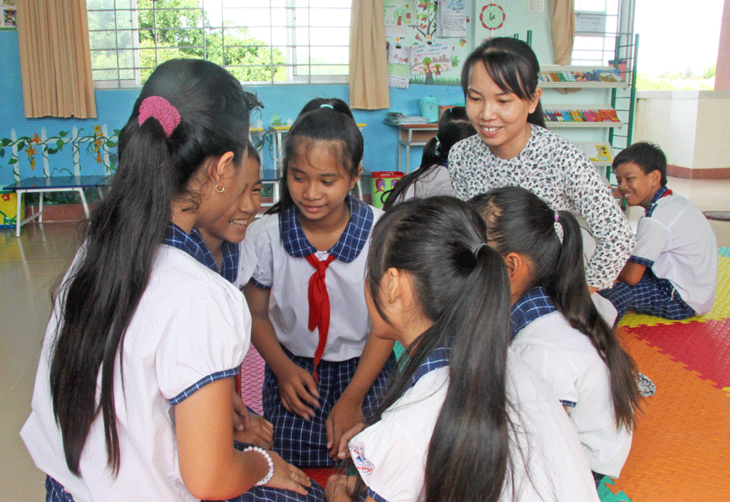Đến phòng học của TĐTV Trường Tiểu học Vĩnh Đại (xã Vĩnh Đại, huyện Tân Hưng), chúng tôi được chứng kiến hoạt động sắm vai của HS trong một không gian rộng rãi, thoáng mát và đẹp mắt. Với giọng điệu trong trẻo, tự nhiên, pha lẫn sự hồn nhiên trên nét mặt các em khi diễn tả lại câu chuyện được học theo cách riêng của mình và được thỏa sức sáng tạo trong cách diễn đạt.