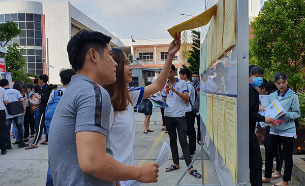 Sinh viên Trường Đại học Kỹ thuật - Công nghệ Cần Thơ tìm kiếm thông tin việc làm tại Ngày hội việc làm. ảnh: B.NG