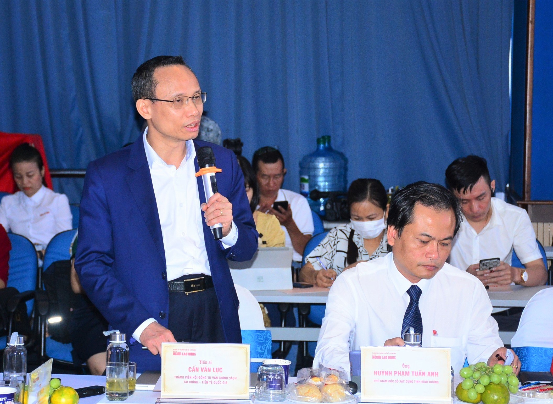 | Tiến sĩ Cấn Văn Lực, Chuyên gia kinh tế trưởng BIDV, thành viên Hội đồng Tư vấn chính sách tài chính - tiền tệ quốc gia chia sẻ tại hội thảo. |