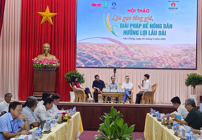 (CT)- Ngày 24-11, tại tỉnh Hậu Giang, UBND tỉnh Hậu Giang phối hợp Cục Trồng trọt thuộc Bộ Nông nghiệp và Phát triển Nông thôn (NN&PTNT) cùng với Báo Tuổi trẻ tổ chức hội thảo “ Lúa gạo tăng giá, giải pháp để nông dân hưởng lợi lâu dài”. Hội thảo là hoạt động hưởng ứng “Festival Lúa gạo Việt Nam lần thứ VI” diễn ra tại Hậu Giang vào tháng 12-2023.