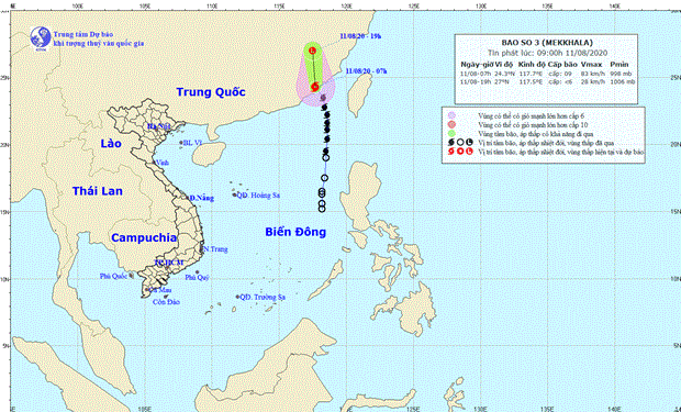 Dự báo đến 19 giờ ngày 11/8, bão số 3 di chuyển theo hướng Bắc, mỗi giờ đi được 20-25km, đi sâu vào đất liền tỉnh Phúc Kiến (Trung Quốc) và suy yếu thành áp thấp nhiệt đới, sau đó thành vùng áp thấp.