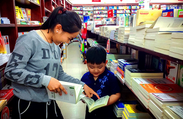 Thiếu nhi chọn mua sách tại nhà sách FAHASA Cần Thơ.