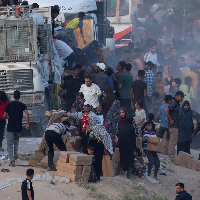 Người dân Palestine nhận hàng cứu trợ hôm 18-5. Ảnh: SCMP