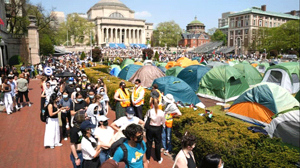 Hoạt động biểu tình tại Đại học Columbia bắt đầu từ ngày 18-4, sau đó lan rộng ra hàng chục trường đại học trên khắp nước Mỹ. Sinh viên tham gia biểu tình lập lều trại trong khuôn viên trường và đưa ra yêu cầu trường dừng hợp tác với các công ty có liên quan đến Israel. Nhiều trường đã phải gọi cảnh sát để lập lại trật tự.