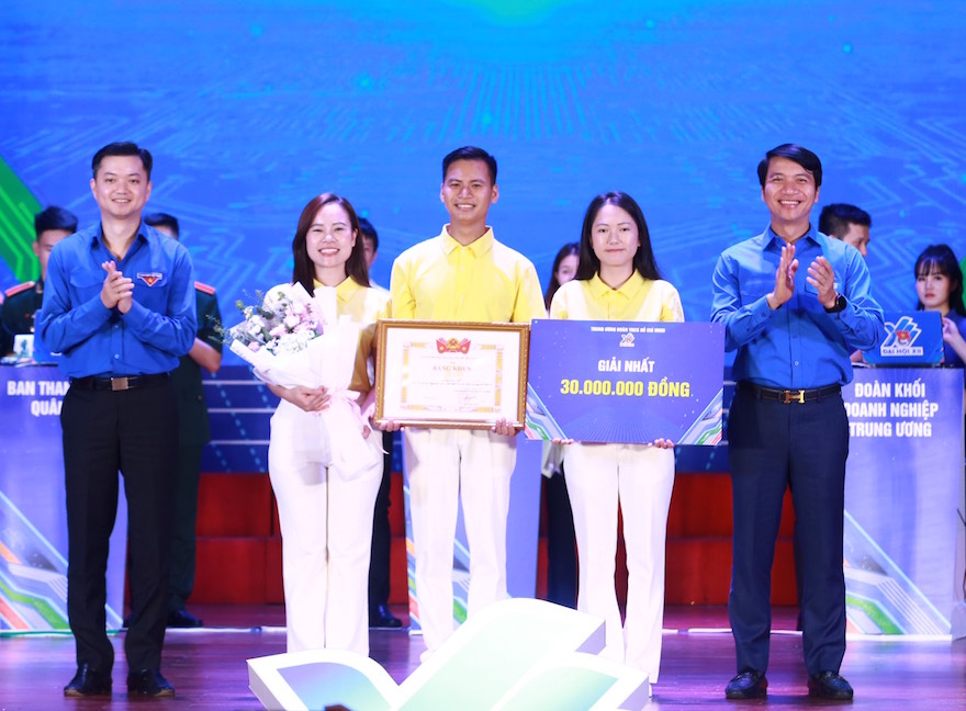 | Bí thư thường trực Trung ương Đoàn, Chủ tịch Hội Liên hiệp thanh niên Việt Nam Nguyễn Ngọc Lương (ngoài cùng bên phải) và Bí thư Trung ương Đoàn, Chủ tịch Trung ương Hội Sinh viên Việt Nam Nguyễn Minh Triết trao giải Nhất cho đội thi Tỉnh đoàn Quảng Ninh. |