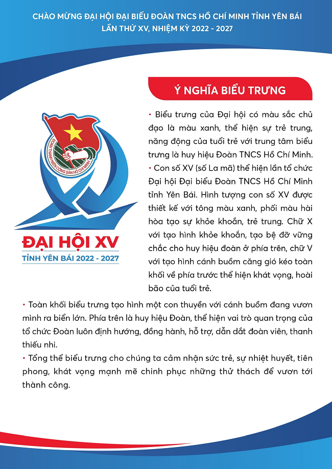 Theo đó, khẩu hiệu hành động của Đại hội là: “Tuổi trẻ Yên Bái bản lĩnh, trí tuệ, tiên phong, tình nguyện và phát triển”; gồm 15 chữ - tương ứng Đại hội lần thứ XV. Tổng số đại biểu về dự Đại hội là 320 đại biểu, trong đó có 220 đại biểu chính thức và dự kiến 100 đại biểu, khách mời.