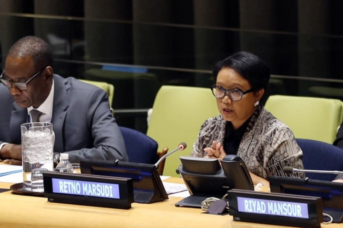 Ngoại trưởng Indonesia, Retno Marsudi kêu gọi loại Indonesia khỏi danh sách đỏ tại Liên Hợp Quốc. Nguồn: Bộ Ngoại giao Indonesia