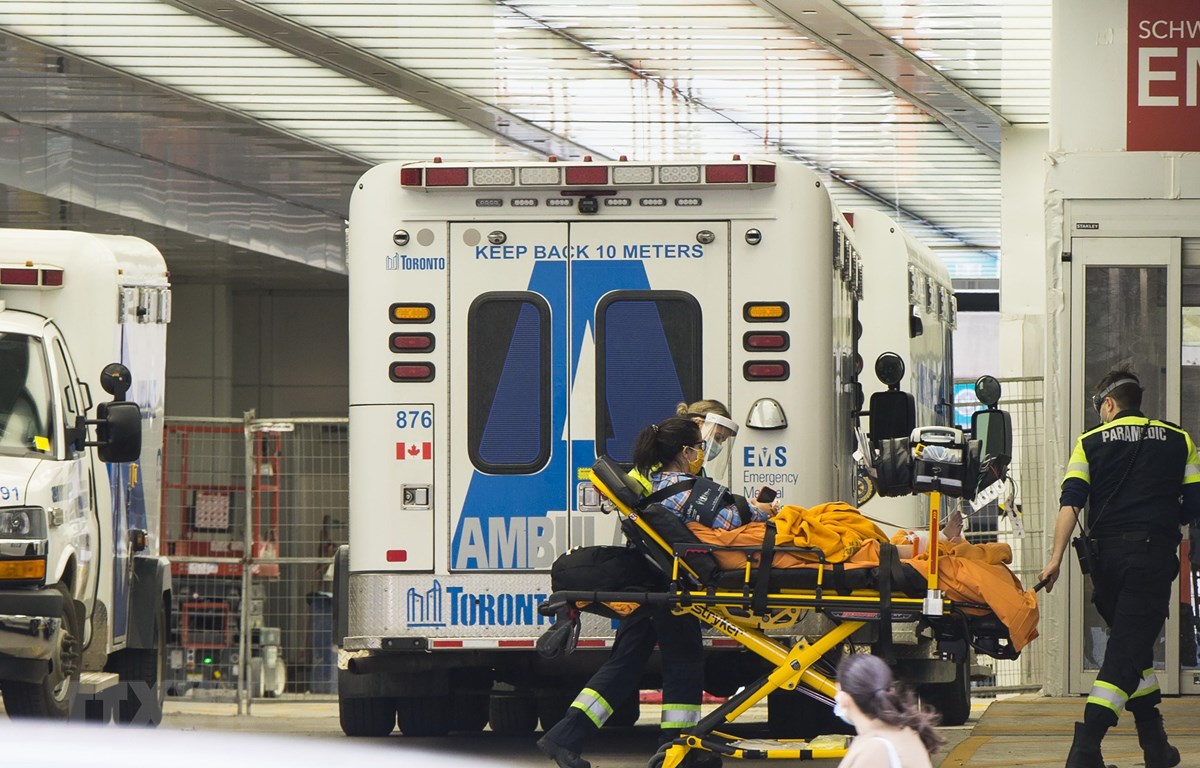 Chuyển bệnh nhân nhiễm COVID-19 tại Toronto, Canada, ngày 11/3/2021. (Ảnh: THX/TTXVN)