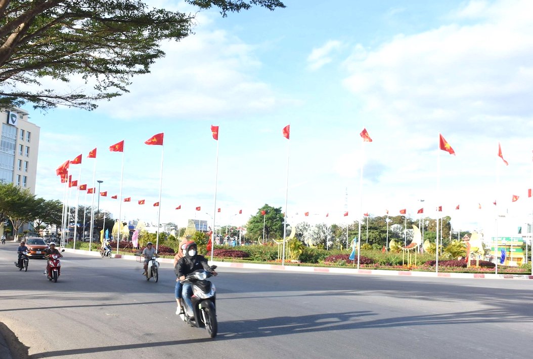 | TP Kon Tum những ngày này ngập tràn cờ hoa để chào mừng 110 năm Ngày thành lập tỉnh. |