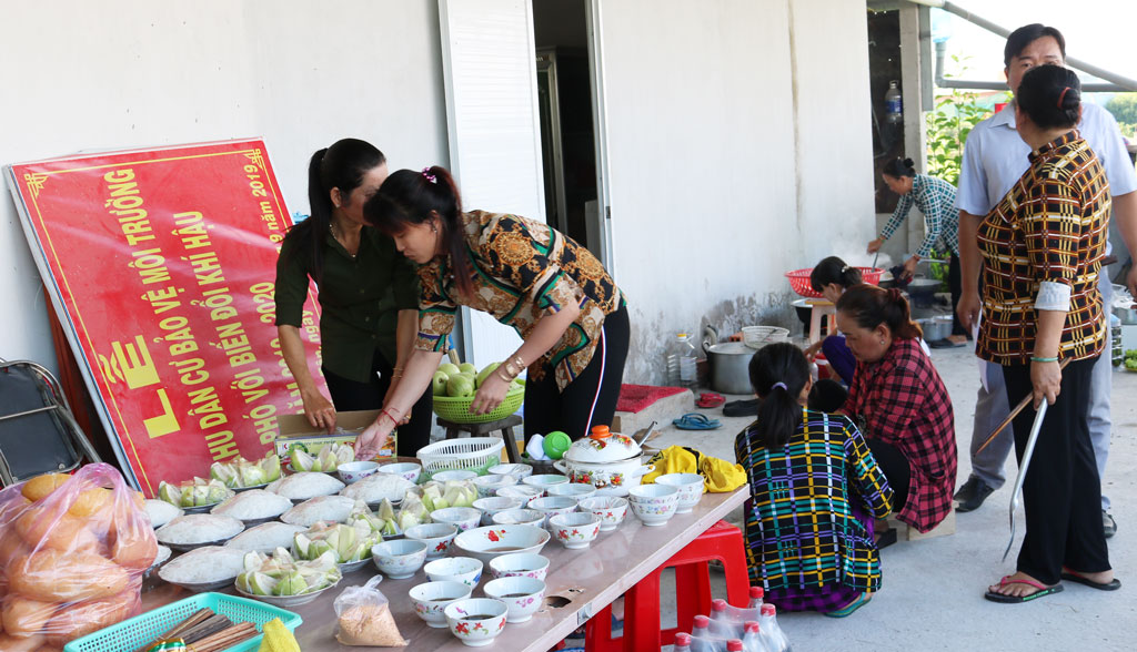 Người dân trong xóm cùng nhau chuẩn bị bữa cơm Đại đoàn kết tại ấp 6, xã An Nhựt Tân, huyện Tân Trụ